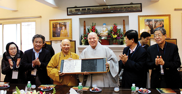 총무원장 스님은 환대에 감사의 뜻을 전하며 “한중불교가 불교문화교류를 활성화하는데 힘을 모았으면 좋겠다”고 말했다.