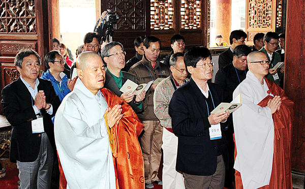 혜능스님이 <육조단경>을 설한 역사적인 성지에 선 순례단의 표정은 상기됐다. 총무원장 스님은 “육조스님이 1만 대중에게 법을 설한 모습을 떠올리니 감회가 남다르다”며 육조스님의 사상이 세계에 널리 알려지길 발원했다. 김동건 상임대표도 “책으로 <육조단경>을 공부하다가 혜능스님이 법을 설한 사찰에 직접 찾아오니 영광스럽기 짝이 없다”며 감격을 감추지 못했다.
