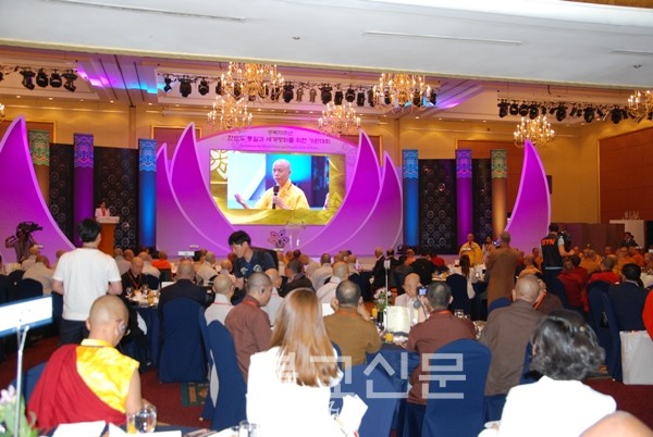 환송만찬은 17일 서울 홍제동에 위치한 그랜드힐튼 호텔 그랜드볼륨에서 열렸다. 대회 3일간의 주요행사를 영상으로 관람하는 것으로 시작된 이날 행사에는 조계종 총무원장 자승스님, 중앙종회의장 성문스님, 진각종 통리원장 회정정사를 비롯해 각국에서 초청된 종교인사 등 사부대중 500명이 참석했다.