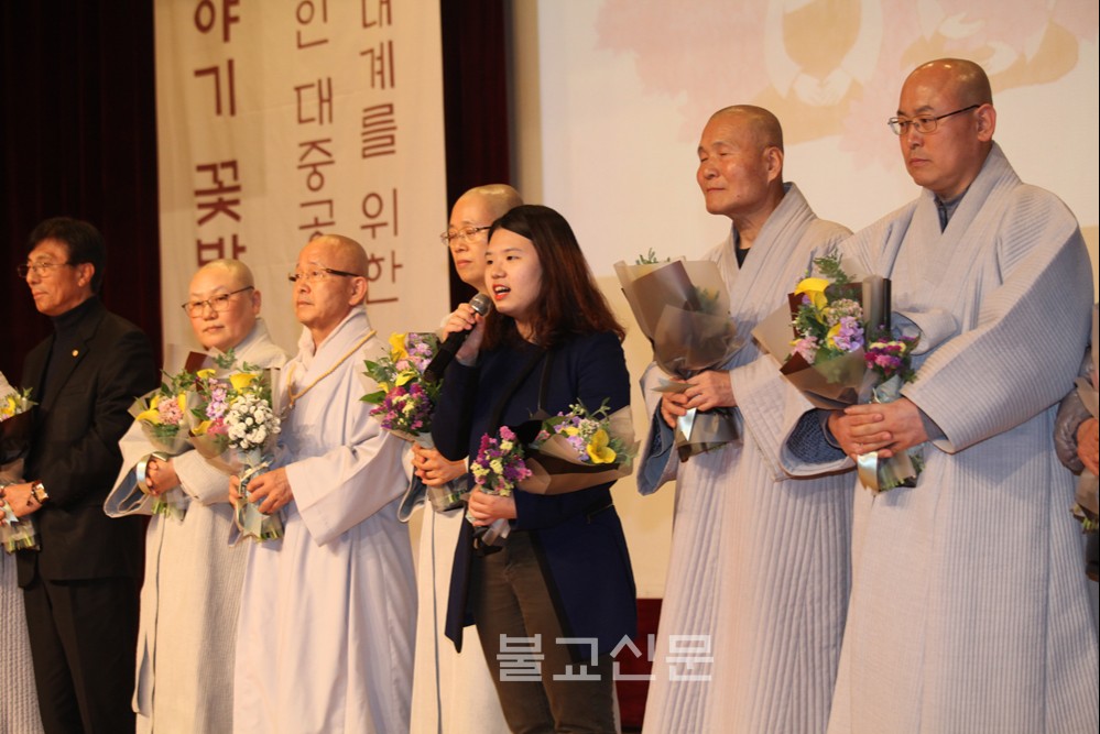 사부대중 100인 대중공사추진위원회 주최로 오늘(12월14일) 오후2시 한국불교역사문화기념관 전통문화공연장에서 열린 100인 대중공사 회향식에 참석한 200여 사부대중은 한 마음으로 발원했다. ‘대중공사, 이야기 꽃밭이어라’를 주제로 열린 이날 회향식은 올 한해 총 9차례 걸쳐 진행된 대중공사의 원만한 회향을 자축하고 평가를 통해 향후 대중공사의 방향을 모색하는 자리였다.