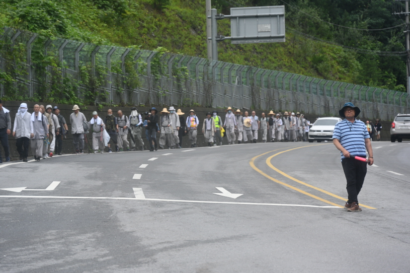 만행결사와 4박5일 예비순례 참가를 신청한 비구 스님 47명, 비구니 스님 11명, 우바새 12명, 우바이 6명 등 76명과 스태프와 취재진 31명, 1일 참가자 13명 등 120명이 함께 3일간 100km걷고 지난 7월30일 한국문화연수원에서 회향했다. 매일 같이 내리는 큰비를 맞으며 묵언정진 행선을 한 순례단의 3일간의 모습을 사진으로 담았다.