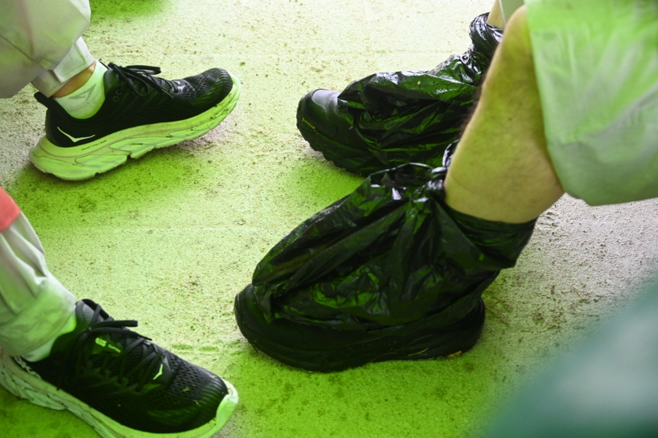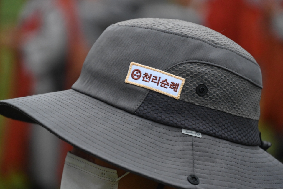 이날 이동거리는 23km. 평균 이동 거리와 비교해 결코 길지 않은 구간이지만 걷기 내내 내리던 빗줄기로 회향은 속절 없이 늦어졌다. 틈틈이 주어진 10분 간의 휴식 외에는 묵언 행선 하는 내내 모두 언제 그랬냐는 듯 염주를 손에 쥐었다. 다시 출발 지점에 섰을 때는 서로 우비는 잘 입었는지, 혹여 빗물이 새는 곳은 없는지, 발 상태는 괜찮은지, 각자의 상태를 확인한 후 ‘힘내자’ ‘화이팅’을 외쳤다. 나와 남을 위한 응원과 격려. 잔뜩 찌푸린 하늘 아래, 똑같은 모자를 걸친 충재가 100여 명 무리가 매끈한 곡선을 그리며 지났다.