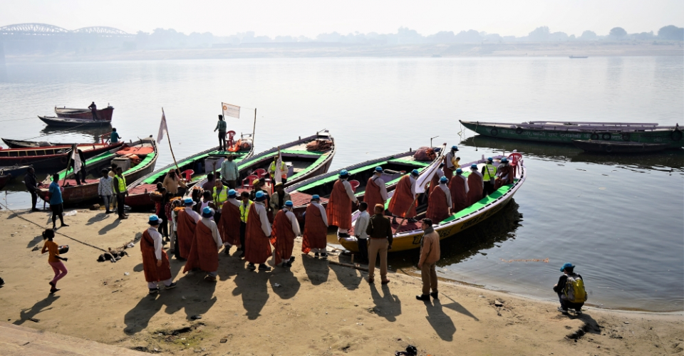 1시간 가량의 입재식을 마친 순례단은 쉴 틈 없이 곧바로 순례에 돌입했다. 복잡한 차로와 골목, 시장 등을 통과하며 6km를 걸어 갠지스강에 도달했다. 순례단은 갠지스강부터는 다섯 척의 배에 나눠 타고 반대편 강가로 향해 떠났다. 삶과 죽음이 공존하는 공간인 갠지스강은 미래 삶의 행복을 위해 몸을 씻는 사람들과 이생에서의 삶을 다한 사람들이 화장(火葬)하는 곳이 공존한다. 1시간 30분을 이승과 저승, 삶과 죽음의 공존을 목격하며 나아간 순례단은 람나가르의 한 항구에 도착, 순례 3일차 일정을 마무리했다.