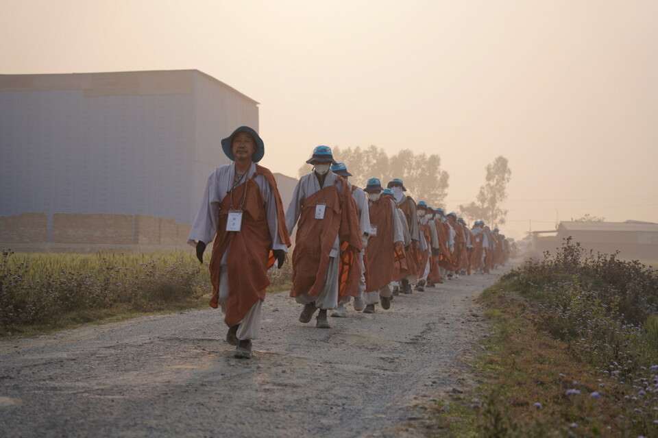 순례단도 주민들과 격의 없이 자연스럽게 어울린다. 처음의 어색함도 사라졌다. 주민들과 같이 사진을 찍고 선물도 나눈다. 이제 저녁 예불은 동네 잔치가 됐다. 아마 마을이 생기고 가장 많은 사람이 모여 가장 흥겹게 노는 최대 잔치일 것이다. 잔치를 가장 즐기는 이는 다름 아닌 순례단이다. 젊은 스님들보다 일흔을 훌쩍 넘긴 어른 스님들이 더 즐거워한다. 말이 통하지 않지만 순례단을 온몸과 환한 얼굴로 맞이해주는 몸짓이 언어와 국가 종교 등 모든 벽을 허물었다.