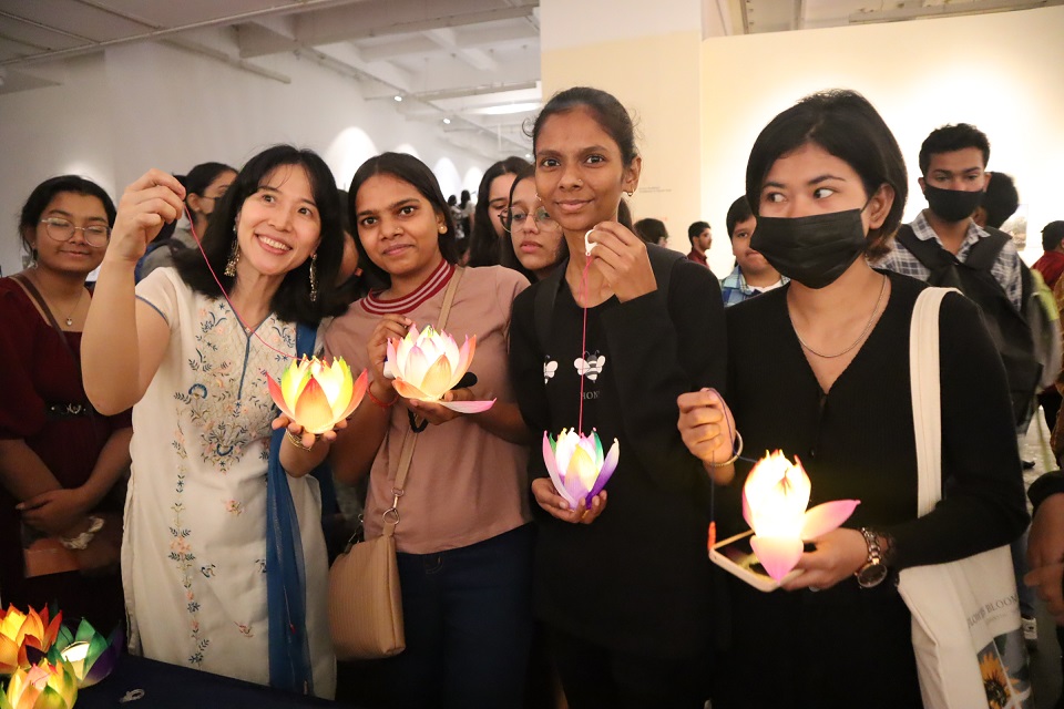 현지 젊은이들도 연잎을 직접 붙여 연등을 만들고 사진으로 등을 찍으며 불교문화에 높은 관심을 보였다.