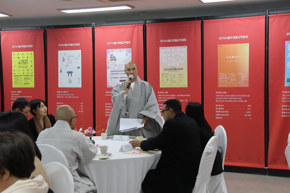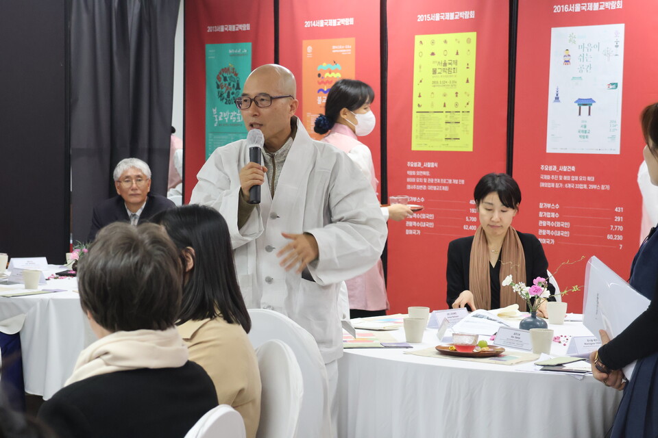 전시장 라운딩에 앞서 박람회 취지와 역사를 설명하는 시간도 가졌다. 불교신문 주간 원돈스님은 “우리나라 불교 2500년 역사의 수행 기록과 문화, 전통이 어떻게 집약된 것인지 보여주는 장이 바로 서울국제불교박람회”라며 “나라도 종교도 인종도 다르지만 오늘은 하나되어 불교문화를 즐겁게 감상하는 시간 보내길 바란다”고 했다.