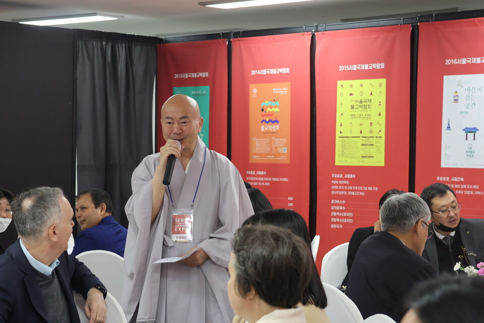 총무원 총무부장 호산스님은 “오늘 참석한 귀빈 여러분들을 진심으로 환영한다”며 “오늘 하루 부처님의 길을 함께하며 좋은 시간 보내길 바라고 모든 국가와 가정에 행복이 깃들길 기도하겠다”고 했다.