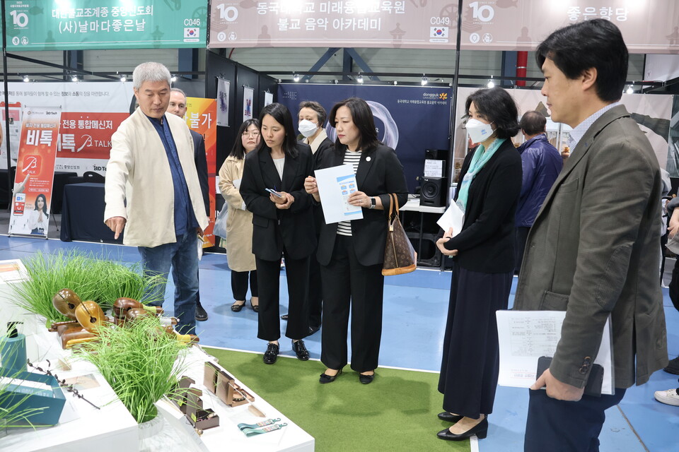 이어 전시장으로 이동해 자유롭게 불교문화를 체험하는 시간을 가졌다. 각국 대사들은 김영수 불교박람회 예술감독, 양동민 불교박람회 집행위원 등의 설명을 들으며 전시장을 둘러봤다. 서로 다른 언어에 전시장 안은 통역으로 분주했지만 대사들은 작품 한 점 한 점 눈을 떼지 않았다.