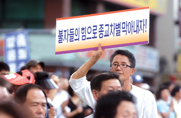 ‘헌법파괴 종교차별 이명박정부 규탄 범불교도대회’가 열린 8월27일 서울광장은 1만여 명의 스님을 비롯한 20만명의 불자들의 ‘종교평화’ 염원으로 가득 찼다. 전국 사찰에서 동시 다발적으로 진행된 범종 타종으로 막이 오른 이번 대회에서는 이명박 대통령 공개 사과와 재발 방지 약속, 경찰청장 등 관련 공직자 엄중 문책, 공직자 종교차별 금지 법제도화 추진 등을 촉구하고, 대통령의 성의 있는 조치가 없을 경우 지역별 범불교도대회를 잇따라 개최할 것을 결의했다.